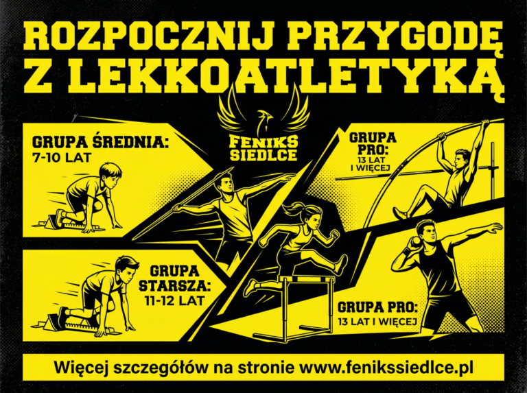 Zapraszamy na treningi lekkoatletyczne Z powodu rozwoju Siedleckiego Klubu Sportowego FENIKS, z przyjemnością możemy ogłosić, że mamy wolne miejsca w następujących grupach treningowych: młodsza 5 – 7 lat – ogólnorozwojowe zajęcia z nastawieniem na naukę podstawowych umiejętności ruchowych. średnia – 7 – 10 lat – wszechstronne poznanie lekkoatletyki poprzez zabawę. starsza – 11 – 12…